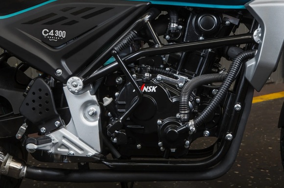 Мотоцикл Minsk C4 300 – новый стильный классический дорожный мотоцикл, пришедший на смену модели С4 250. Он обладает всеми чертами мощного городского байка, необходимыми для комфортного передвижения как по городу, так и по шоссе. С4 300 оснащен надежным бензиновым двигателем с воздушно-масляным охлаждением. Его рабочий объем — 282,7 кубических сантиметров, мощность 28,5 л.с. На сегодняшний день — это самый мощный мотоцикл в линейке мотоциклов MINSK. Максимальная скорость — более 130 км/ч. Этого вполне хватит для ощущения скорости и уверенности на дороге. Объем бака -18 литров, что позволит передвигаться на значительные расстояния без дозаправки. Двигатель встроен в стальную дуплексную раму. На С4 300 установлена телескопическая вилка перевернутого типа с большим диаметром перьев и увеличенным ходом. Задняя подвеска — стальной маятник и моноамортизатор с регулировкой жесткости. MINSK С4 300 оборудован полным комплектом LED-светотехники. Фара, скомпонованная из большого количества LED-элементов, не только хорошо светит, но и эффектно смотрится.Благодаря доступной цене и простоте управления, можно смело сказать, что это прекрасный выбор, как для начинающих, так и для опытных мотолюбителей.
