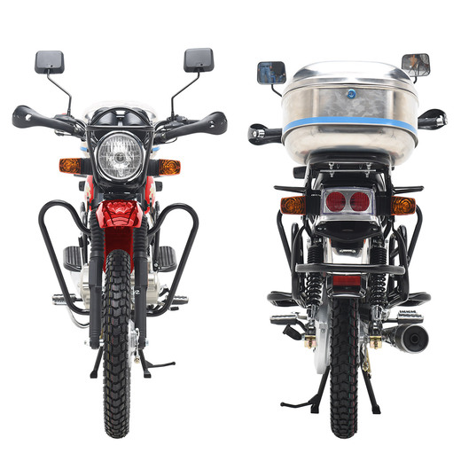 Мотоцикл Regulmoto SK 150-22 – классический «дорожник» с надежным и экономичным малокубатурным двигателем. Данная модель изготавливается на собственных мощностях крупного китайского производителя Senke.Несмотря на классический внешний вид Regulmoto SK 150-22 отличается достаточно интересным и продуманным дизайном. В раме мотоцикла установлен одноцилиндровый 4-тактник с воздушным охлаждением с рабочим объемом в 149 см3. Двигатель можно запускать как кнопкой электростартера, так и при помощи традиционного кик-стартера. В целом байк выглядит лаконичным и современным – еще одной приметой актуальных трендов стали спицованные диски переднего 18-дюймового и заднего 18-дюймового колес. Характерная для «дорожников» подвеска представлена телескопической вилкой спереди и двумя амортизаторами сзади.Широкое комфортное сиденье и вместительный бак Regulmoto SK 150-22 недвусмысленно указывают на назначение мотоцикла, окончательную ясность вносят багажник, складывающиеся пассажирские подножки и наличие мощной центральной подножки. Безопасность эксплуатации на дорогах общего пользования обеспечивают обязательный комплект зеркал заднего вида и светового оборудования, включающего фару головного света, светодиодные поворотники и стоп-сигнал. Этот мотоцикл станет отличным выбором в качестве транспортного средства на каждый день и позволит своему обладателю с комфортом решать широкий круг повседневных задач.
