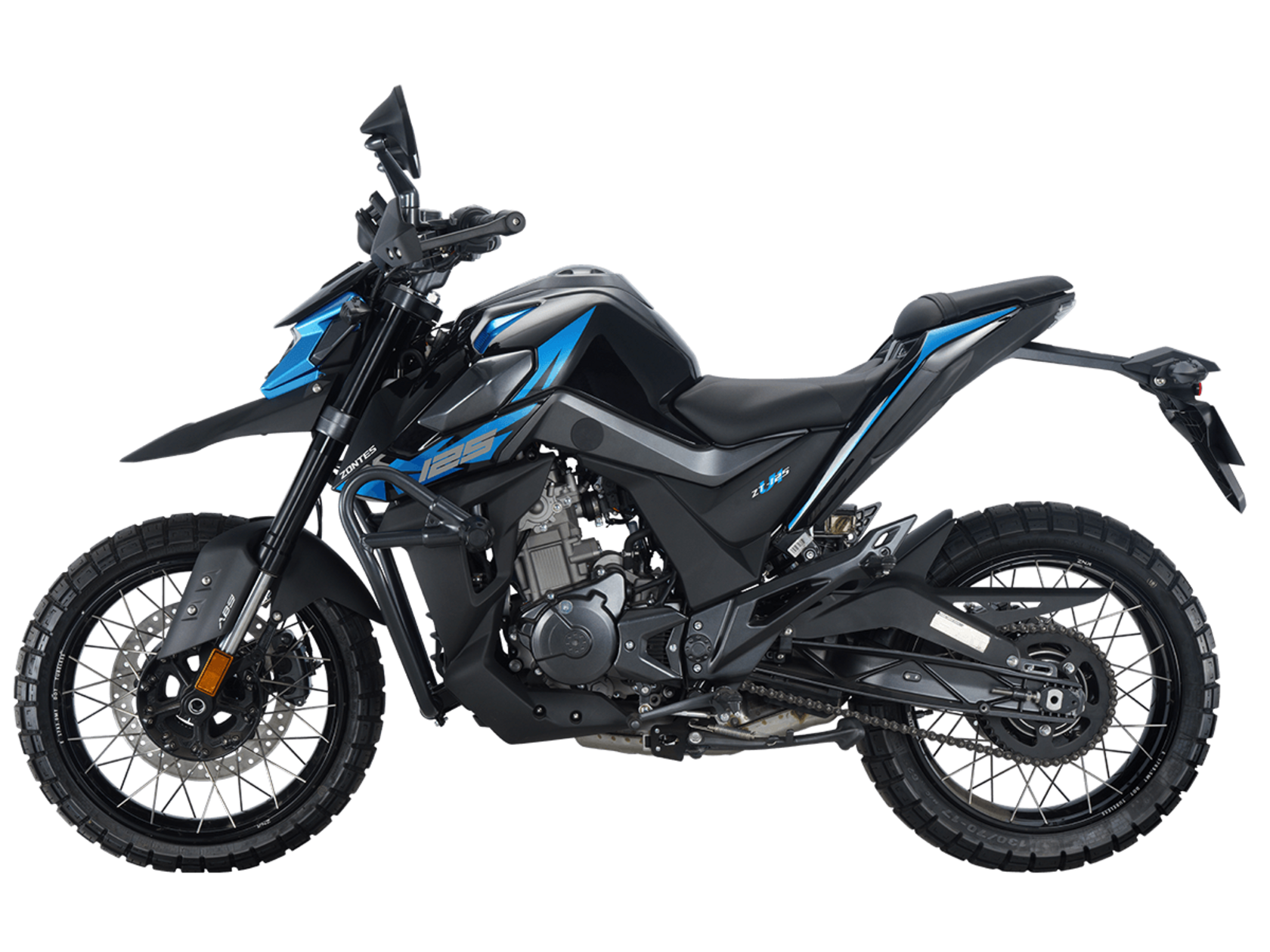 Мотоцикл ZONTES ZT125-U1 – современный универсальный нейкед, обутый в полувнедорожную резину. Готов бросить вызов и городскому траффику, и загородным дорогам, и лёгкому бездорожью.Силовая установка представлена одноцилиндровым 4-тактным двигателем ZT152MI с 4 клапанами и 2 верхними распредвалами. Двигатель имеет объём 125 см³ и обеспечивает мощность в 15 л.с. Оснащён инжектором BOSCH и системой жидкостного охлаждения. Механическая коробка передач имеет 6 ступеней и схему 1-N-2-3-4-5-6.Объём топливного бака 12,5 литров.Классические спицованные колёса имеют диаметр 17 дюймов. Для подвески спереди используется телескопическая вилка, а сзади – моноамортизатор. Для торможения установлена дисковая гидравлическая система.В конструкции мотоцикла используется пространственная трубчатая рама из стали. Минималистичная выпускная система также выполнена из нержавеющей стали. Мотоцикл поставляется с защитной клеткой и слайдерами для защиты при падениях. На руле имеется защита кистей. Для освещения используется яркая LED-оптика, а приборная панель представлена цифровым дисплеем. Рычаги тормоза и сцепления оснащены защитными скобами.Габариты мотоцикла 2006х864х1136 мм. Колёсная база 1369 мм. Высота по седлу 800 мм. Вес 128 кг.