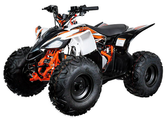 Представляем Вам надежный детский квадроцикл, выполненный в лучших традициях спортивных ATV. Вашему ребенку определенно понравится яркий и современный дизайн нового KAYO AT110. В целом, этот квадроцикл благодаря оптимальному сочетанию цены, мощности и качества, станет отличным вариантом в качестве первой техники для вашего ребенка.Модель AT110 оснащается 4-тактным двигателем KAYO с рабочим объемом в 110 куб. см. Вся мощность с помощью автоматической трансмиссии и цепного привода передается на заднюю ось. Квадроцикл очень прост и легок в управлении, поэтому у ребенка не возникнет проблем с освоением этой техники.Спереди используется двухрычажная подвеска. Сзади расположен моноамортизатор. Такая конфигурация может быть вам знакома по взрослым спортивным ATV. Тормоза гидравлические дисковые.На руле расположены все необходимые кнопки для управления функциями квадроцикла. Также здесь расположена кнопка аварийного выключения двигателя. Предусмотрен и ограничитель скорости.Квадроцикл Kayo AT110 построен на стальной трубчатой раме. Такая конструкция позволила сделать квадроцикл прочным и легким.