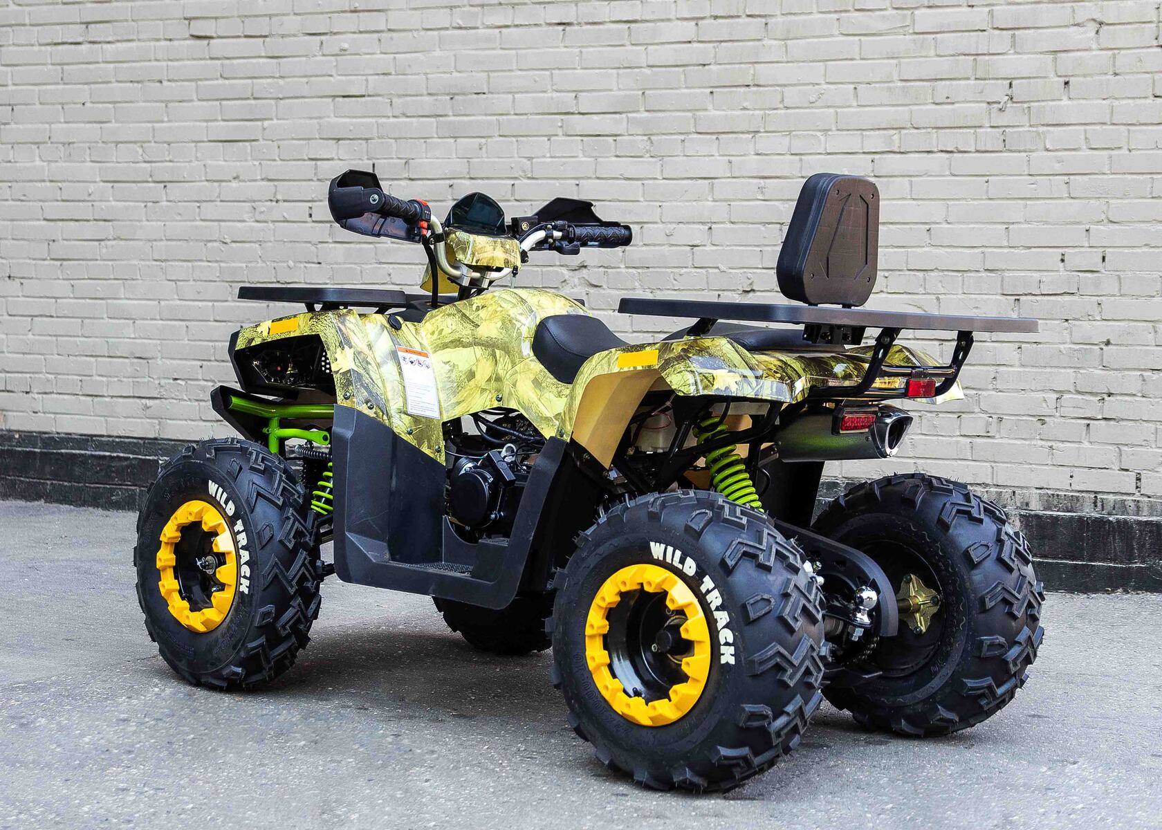Wild Track Lux – сочетает в себе удобство ,простоту обслуживания и хорошую проходимость в самых разных условиях использования . Благодаря отлично настроенной подвеске управление и передвижение на нем становится очень комфортным. Все неровности и кочки, будут проглатываться без проблем, ведь на нем установлены колеса на 10 дюймов .Квадроцикл оснащен 161 QMK на 200 см3 двигателем c воздушно-масляным охлаждением и автоматической коробкой передач с реверсом , дисковыми тормозами, панелью приборов , линзованной оптикой с диодными ДХО и люстрой , литыми дисками, ручным стартером . Он отлично подойдет для семейных покатушек ,а также для рыбалки и охоты .Вы получите незабываемые впечатления от вождения .Данная комплектация поставляется почти собранная.