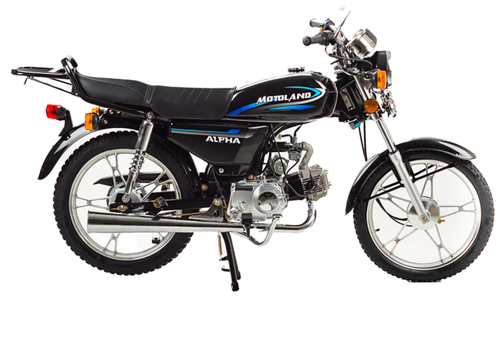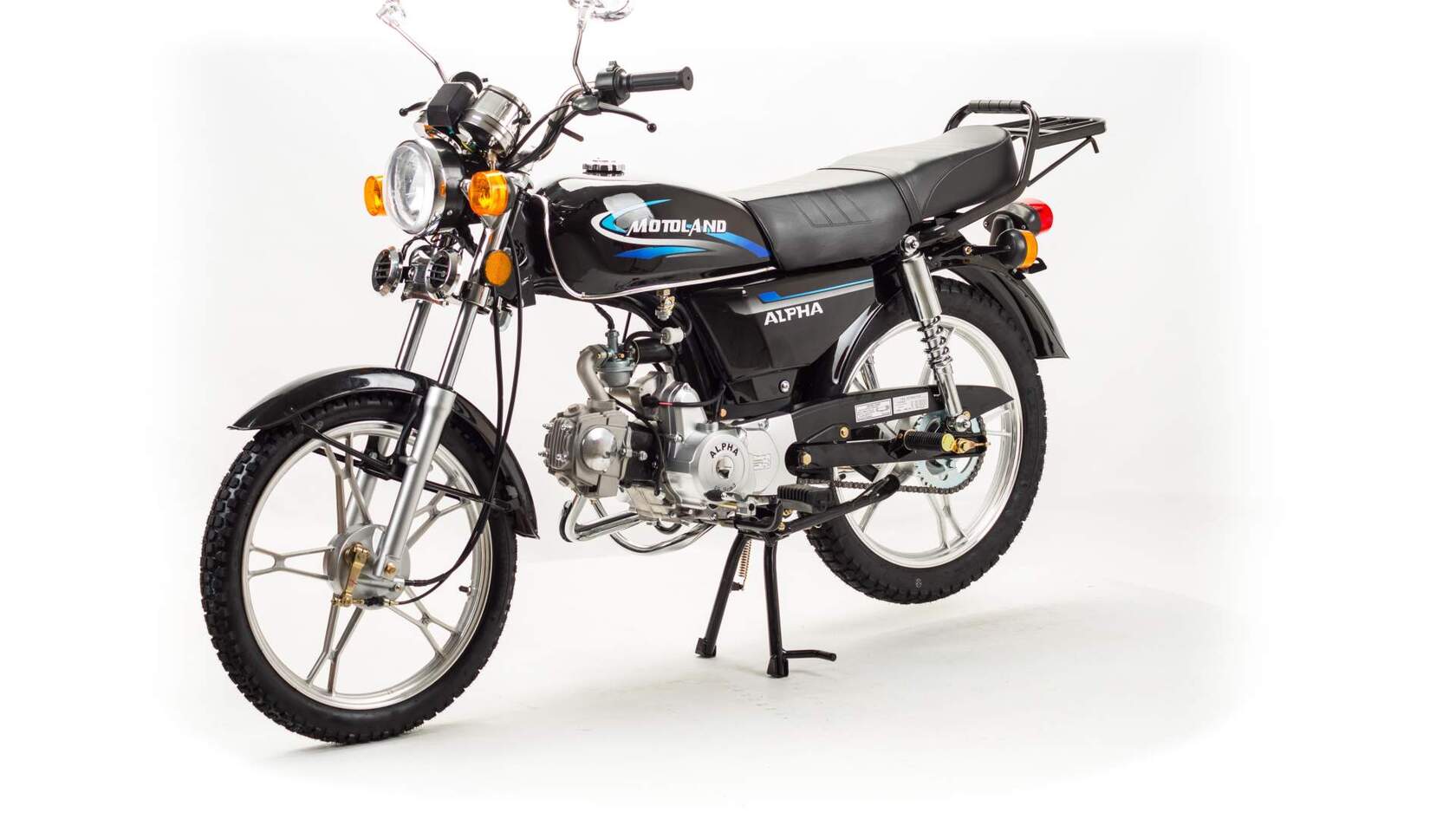 MotoLand Alpha 11 это всеми полюбившейся мопед который не нуждается в представлении.Мопед можно использовать для самых различных целей: для одиночного или совместного передвижения в городском потоке, сельской местности, поездки на природу, рыбалку и охотуПри этом он универсален и подходит мотолюбителям любого возраста,и опыта вождения.Для подростков, подойдет как подарок и первый мотоцикл для только начинающего свое знакомство с миром мототехникиВзрослых, которым нужна техника для поездок из точки А в точку Б и обратно, именно в таком режиме он способен показать себя с лучшей стороны.Мопед полностью отвечает требованиям к безопасному движению по городу и за городом: оснащен фарой дальнего и ближнего света, поворотниками, стоп-сигналом, звуковым сигналом, зеркалами заднего вида, габаритными светоотражателямиДля того чтобы ездить на мопеде, нет необходимости в регистрации в ГАИ и страховка.Техническая сторонаМопед поставляется с 50 кубовым одноцилиндровым четырехтактным двигателем с воздушным охлаждением ZS50-A (139FMB) конструкция которого полностью повторяет знаменитый мотор HONDA CUB.Установлен карбюратор PZ19 с системой обогащения и пуском в любую погоду и время года.Двигатель работает ровно, имеет высокую мощность в широком диапазоне оборотов, что позволяет комфортно трогаться и быть уверенным, что двигатель не заглохнет в неподходящий момент.Двигатель имеет возможность легкого запуска с кнопки на руле, так как имеет электростартер, а при необходимости можно воспользоваться кик стартером.Механическая трансмиссия содержит 4 передачиМопед имеет хорошую динамику разгона, расход 3 л на 100 км, объем бака 7л, которого хватит на 200+км