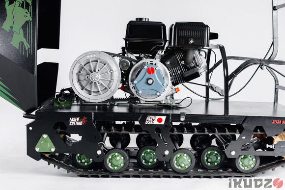 • 12. Мотобуксировщики IKUDZO имеют идеальную балансировку и нагрузку на гусеницу. Двигатель размещён так, что даже без дополнительного груза на мотособаке давление на снег будет равномерно, что значительно повышает проходимость!