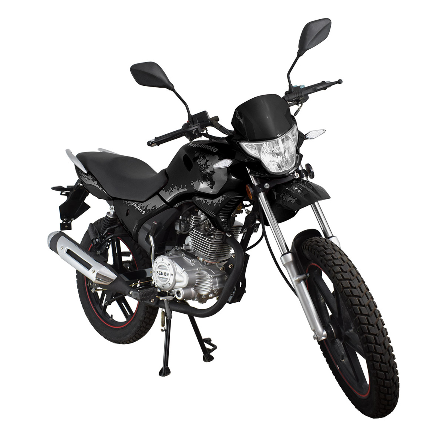 Комплектация За безопасность использования мотоцикла Regulmoto SK200-9 отвечают надежная тормозная система (дисковый тормоз спереди и барабанный сзади)и зеркала заднего вида.