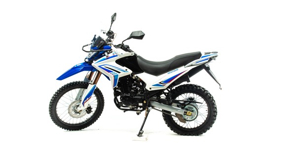 Обновленный мотоцикл Motoland XR250 ENDURO (172FMM-PR) предназначен для езды по бездорожью, эндуро соревнований, подходит для города, шоссейных и сельских дорог.. Motoland XR250 ENDURO (172FMM) отличаются высокой проходимостью, отлично ведут себя на мягком грунте и песке, легко преодолевают препятствия. Спортивный характер XR250 ENDURO (172FMM) подчёркивается современным дизайном. Классическая конструкция акцентирует внимание на сильных сторонах мотоцикла, которому не страшны грязь, брёвна, камни и другие преграды. Мотолэнд XR250 ENDURO (172FMM) весит 130 кг и подходит для пользователей любого роста, хорошо держит баланс и позволяет уверенно сохранять равновесие даже на сложных участках эндуро трасс. Колёса спицованные, сделаны из алюминия. Размер переднего колеса — 21 дюйм (530 мм), заднего — 18 дюймов (450 мм). Передние и задние тормоза дисковые. Покрышки с крупными шипами подходят для бездорожья, лесных дорог, песка и мягкого грунта. При этом купить мотоцикл Эндуро можно не только для соревнований, но и для езды по трассе и городу. Передняя вилка — перевёрнутая телескопического типа, дополнительно защищена жёстким пластиком. Задняя подвеска с моноамортизатором. Руль Эндуро усилен пластиковыми рамками, которые защищают руки гонщика от веток и травм при падениях. Приборная панель оснащена ЖК-экраном, на котором отображается вся информация о состоянии Эндуро: обороты, пробег, скорость и другие необходимые данные. Китайский Эндуро компании MotoLand оснащён одноцилиндровым 4-тактным двигателем 172 FMM с воздушным охлаждением и балансирным валом. Мотор мощностью 21 л. с. и объёмом 250 см³ даёт возможность разгоняться на Эндуро по ровной трассе до 120 км/ч. Расход топлива — 5 литров на 100 км. Коробка передач механическая, 5-скоростная. Для запуска мотора используйте электростартёр или кикстартёр. Установлена электронная система зажигания (CDI). У нас Вы можете купить этот мотоцикл с бесплатной доставкой по РФ и гарантией до года. Также его можно приобрести в рассрочку или в кредит.