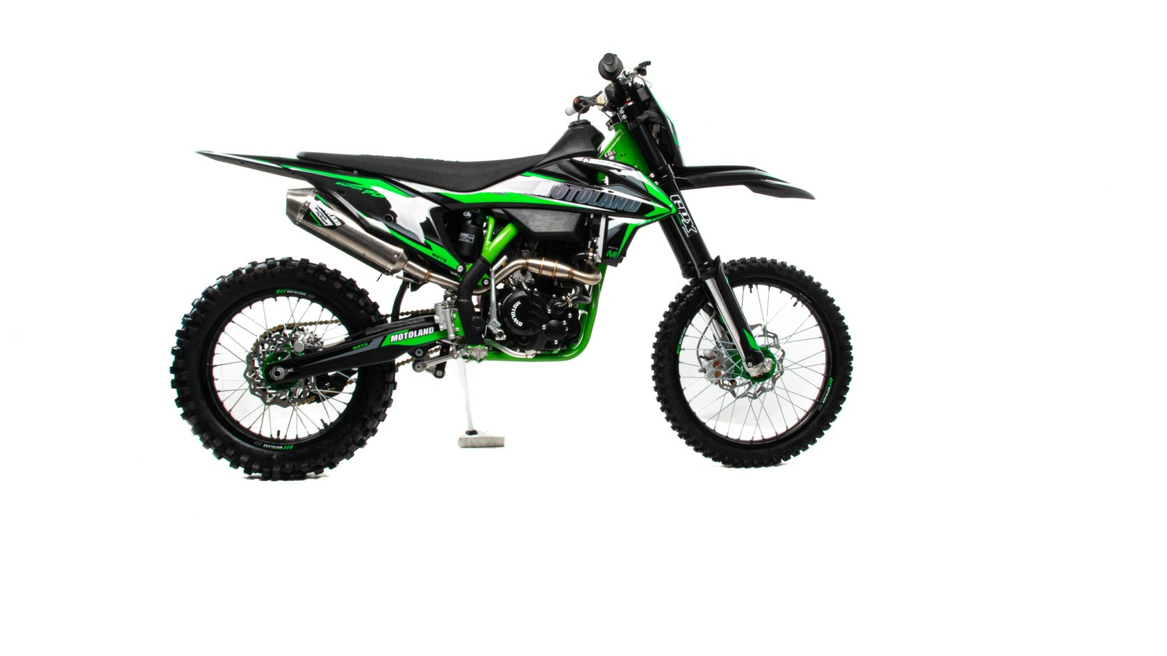 MOTOLAND FX300 NCСовременный дизайн мотоцикла подчёркивает спортивный характер байка.Установлен мощный двигателm с водяным охлаждением ZONGSHEN 182 MNБольшой ход подвесок для комфортного передвижения по пересеченной местности, которые также позволяют ехать быстро и агрессивноМотоцикл больше предназначен для езды по переченной местности полям и лесам, чем для города из за профиля резины.Он маневренный и удобный,сидение с противоскользящим чехлом.При этом он прост в управлении и неприхотлив в обслуживании и подходит мотолюбителям любого возраста и опыта вождения.