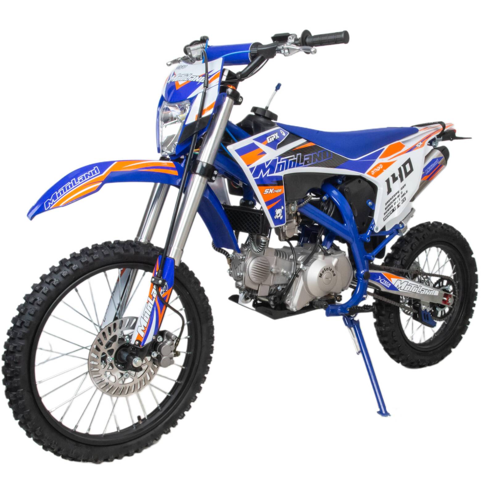 Встречайте долгожданную новинку SX на 140 куб. Питбайк Motoland SX 140 E 19/16 идеален для поездок по грунтовым дорогам и бездорожью. Хорошо чувствует себя на мягком и среднем грунте, разгоняется до 90 км/ч. Оснащён спортивными траверсами и амортизаторами с регулировкой. весит всего 75 кг.Питбайк прост в управлении и не требует специального ухода, подойдёт как новичкам, так и любителям мотокросса.У питбайка отличный узнаваемый дизайн. Конструкция подчёркивает неуступчивый спортивный характер, который не остановится ни перед одним препятствием.Комбинированный прочный пластик не ломается при сгибании.Передняя подвеска — телескопическая вилка перевёрнутого типа с регулировками, которая отлично подходит для преодоления ям, и других неровностей плохих дорог или их отсутствия. Задняя подвеска маятниковая с моноамортизатором тоже с регулировкой.Питбайк оснащён карбюратором NIBBI PE 22 и одноцилиндровым четырёхтактным двигателем с воздушно-масляным охлаждением. Надёжный мотор 156 FMJ