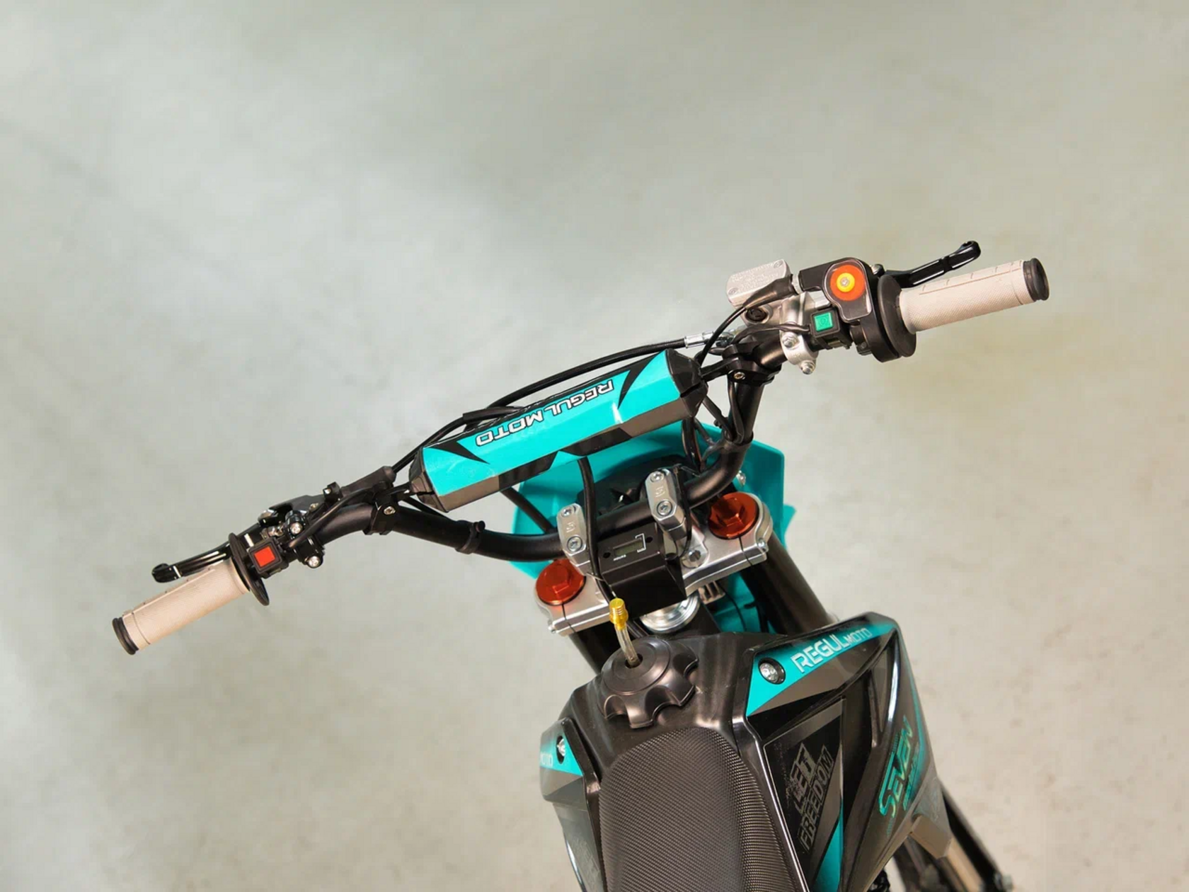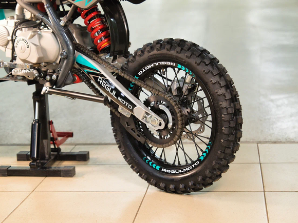 Regulmoto SEVEN PRO на колесах 17/14 дюймов – обновлённая модель популярного питбайка для активного отдыха и спортивных развлечений. Этот мини-мотоцикл поможет своему владельцу получить или усовершенствовать навыки управления внедорожной мототехникой, и станет надежным напарником в поездках по любому бездорожью.За подготовку топлива у свежей модификации питбайка отвечает карбюратор Nibbi PE19 производства известного бренда спортивных компонентов Nibbi Racing. Среди других обновлений модели: новый пластик "Betta", качественные амортизаторы бренда KKE, модульная LED-фара с четырьмя сверх яркими светодиодами, светодиодный стоп-сигнал, регулируемые подножки, высокий толстостенный алюминиевый руль ProTaper EVO с перемычкой и регулировкой вылета, а также двухкомпонентные серо-черные грипсы.В числе стоковых комплектующих и компонентов питбайка Regulmoto SEVEN PRO необходимо отметить:• усиленные ободья колес из алюминия марки 7116;