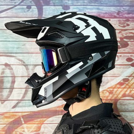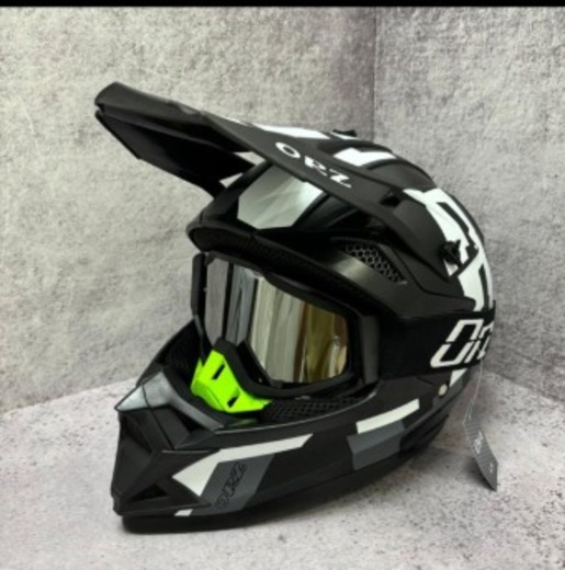 Шлем кроссовый ORZ, Черный/Белый, M (в комплекте с очками 100%)