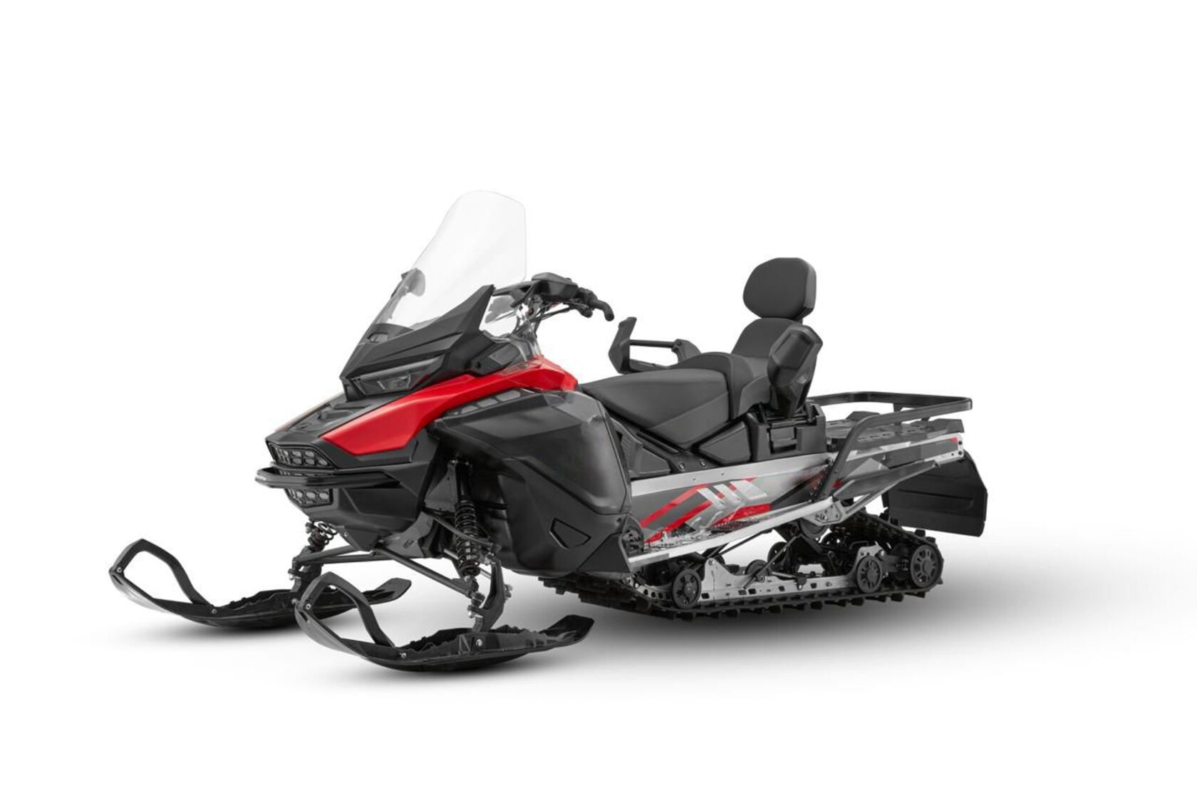 Снегоход Таврида — это техника, созданная для тех, кто не боится зимы и предпочитает свободу движения там, где дороги заканчиваются. В его основе — современный трёхцилиндровый рядный двигатель объёмом почти 900 кубических сантиметров. Это четырёхтактный мотор с двумя верхними распредвалами (DOHC) и жидкостным охлаждением, что гарантирует стабильную работу в самых суровых условиях. Снегоход развивает до 97 лошадиных сил и выдаёт внушительные 93 Н·м крутящего момента на пике мощности. Этой силы хватает не только для уверенного разгона по укатанной трассе, но и для того, чтобы пробиваться сквозь глубокий снег.Система питания — современный электронный впрыск топлива (EFI), благодаря которому двигатель запускается легко, работает ровно и экономично расходует топливо. Для запуска используется электростартер, что делает эксплуатацию ещё комфортнее. Рекомендуемое топливо — привычный бензин АИ-92 или АИ-95.В движение снегоход приводит надёжный вариатор CVT, который сочетает простоту управления с эффективной передачей мощности. Конструкция предусматривает несколько режимов — пониженный, повышенный, нейтраль, а также электронный реверс для движения назад. Такое решение позволяет одинаково уверенно чувствовать себя и при медленном маневрировании, и на высоких скоростях.Ходовая часть снегохода продумана до мелочей. Спереди установлена независимая подвеска с А-образными рычагами и стабилизатором поперечной устойчивости. Пружины в сочетании с масляными амортизаторами обеспечивают мягкий ход, сглаживая неровности и добавляя уверенности в управлении. Сзади используется склизовая подвеска с ограничителем хода, что позволяет эффективно распределять нагрузку и сохранять устойчивость даже при перевозке груза.Тормозная система у «Тавриды» также внушает доверие: дисковый гидравлический тормоз с двухпоршневым суппортом обеспечивает надёжное замедление в любых условиях, будь то ледяная корка или рыхлый снег.Снегоход впечатляет и своими скоростными характеристиками: максимальная скорость достигает 172 км/ч, что делает его отличным выбором не только для утилитарных задач, но и для любителей адреналина. При этом высокая тяга на низких оборотах позволяет уверенно двигаться даже по тяжёлой целине.Конструкция шасси также подчеркивает универсальность модели. Длинные лыжи (1070 мм) и гусеница шириной почти полметра создают оптимальное пятно контакта, а регулируемая ширина колеи позволяет подстраивать поведение снегохода под стиль езды. Высота грунтозацепа в 38 мм даёт отличное сцепление на рыхлом снегу.Несмотря на внушительные размеры (3400 × 1170 × 1500 мм), снегоход остаётся достаточно удобным в управлении. Высота седла подобрана так, чтобы обеспечивать комфорт при длительных поездках: до сиденья всего 978 мм, а значит посадка остаётся устойчивой и естественной. Сухой вес техники составляет 315 кг, а грузоподъёмность достигает 238 кг — этого достаточно, чтобы взять с собой всё необходимое снаряжение или пассажира. Крупный топливный бак объёмом 42 литра позволяет совершать длительные путешествия без частых дозаправок.Снегоход Таврида — это мощь и надёжность, упакованные в современный дизайн и продуманную конструкцию. Он одинаково хорошо подходит для активного отдыха и серьёзной работы, уверенно чувствуя себя и на трассе, и в условиях настоящег