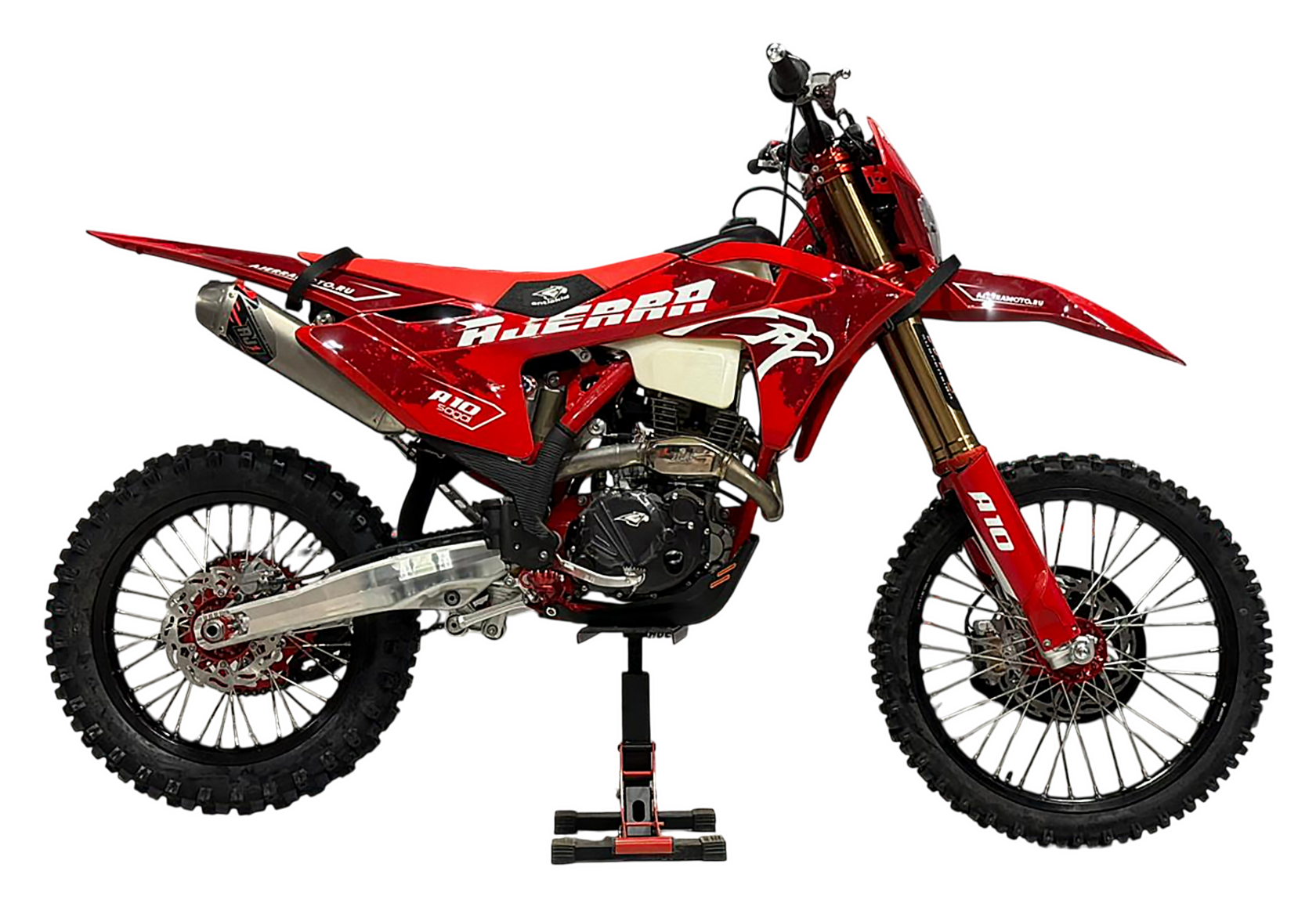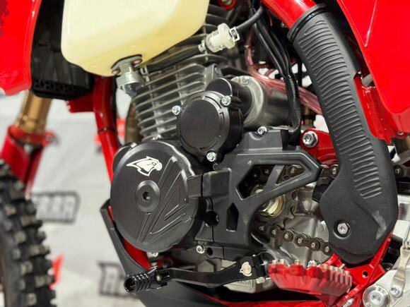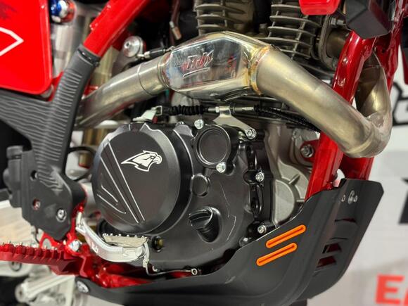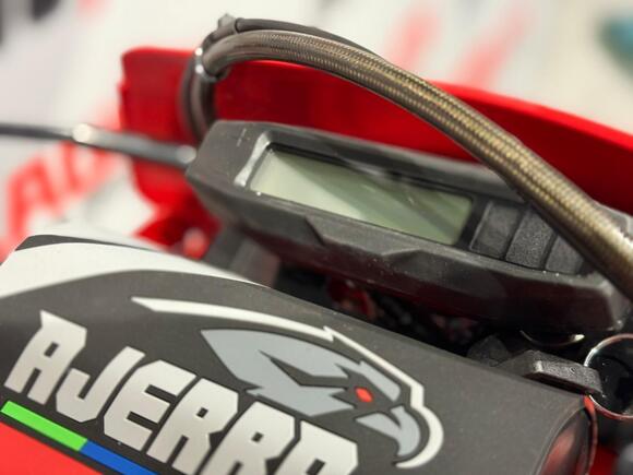 Мотоцикл AJERRA SAGAI A10 YB300H — это современный эндуро-байк, сочетающий в себе надёжность, мощь и управляемость, созданный специально для тех, кто ценит уверенность на трассе и бездорожье. Построенный на прочной раме AJ1 К10 — копии легендарного KTM 2024 года, он демонстрирует высочайший уровень прочности и устойчивости при активных нагрузках. В сердце мотоцикла установлен проверенный временем двигатель Loncin YB300H 176 FMN с воздушным охлаждением. Мотор отличается стабильной тягой, простотой обслуживания и долговечностью, что делает его идеальным выбором как для тренировок, так и для любителей активных покатушек по пересечённой местности. В паре с надёжным карбюратором Nibbi Racing PWK 34 Black он обеспечивает точную подачу топлива и отзывчивость на газ. Подвеска здесь не уступает по качеству — передняя вилка HTW SCC 930 мм с одним картриджем и задний амортизатор HTW 2450 с прогрессией эффективно отрабатывают кочки и препятствия, обеспечивая максимальный комфорт и контроль в движении. Фрезерованные траверсы AJ1 2024 и алюминиевый маятник добавляют лёгкости и прочности конструкции, а система тормозов AJ1 с дисками на обеих осях гарантирует стабильное торможение даже в экстремальных условиях. Детали выполнены с вниманием к каждой мелочи: усиленный руль AL7075, алюминиевые подножки AJ1 2024 (копия S3), надёжная цепь KMC 520 Pro, эргономичные грипсы Lock ON и ручка газа Nibbi. Светодиодная оптика 2 EYE LED Generation 4 (50W) обеспечивает отличную видимость даже ночью. Алюминиевые обода UNISON 7116 и фрезерованные ступицы придают мотоциклу дополнительную прочность, а внедорожные покрышки Cordinal 80/100-21 и 120/90-18 обеспечивают уверенное сцепление с любой поверхностью. Комфорт и надёжность дополнены практичными элементами: счётчик моточасов, защита мотора и рамы, стропы для фиксации, заглушки руля и сиденье AntiSkid. Вся электрика работает от аккумулятора Skyrich Li-Ion, что гарантирует стабильный запуск и работу систем. Высота по седлу — 940 мм, что делает мотоцикл удобным для райдеров среднего и высокого роста. AJERRA SAGAI A10 YB300H — это мощный и сбалансированный эндуро-мотоцикл для тех, кто ищет универсальность и готовность к любым условиям. Он подойдёт как для тренировок и участия в любительских соревнованиях, так и для активного отдыха.