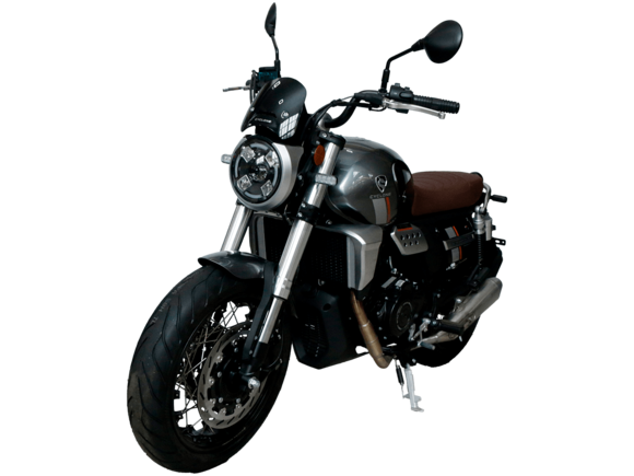 CYCLONE RE401 (SR400-B) 2024 – классик, в котором подчёркнутая простота объединяется с современными технологиями. Данная модель является более продвинутой версией модели RE3 (SR-400) – мотоцикл обладает более современным дизайном, снабжён стильными металлическими накладками на радиатор, а также топливным баком, объём которого увеличен до 20 литров.Двухцилиндровый четырёхтактный двигатель объёмом 401 см3 выдаёт 43 л.с. на 9500 об/мин. Инжекторный впрыск топлива с инжектором BOSCH увеличивает топливную экономичность, а также позволяет добиться высокой приёмистости и неприхотливости агрегата. Жидкостная система охлаждения не допустит перегрева двигателя даже при самом агрессивном вождении. На мотоцикл установлена 6-ступенчатая механическая коробка передач.Максимальная скорость мотоцикла составляет 150 км/ч.RE401 оснащён классическими спицованными колёсами диаметром 17 дюймов. Колёса обуты в бескамерные покрышки TIMSUN. С неровностями дороги эффективно справляются телескопическая вилка перевёрнутого типа спереди и маятник с двумя амортизаторами сзади. Ход передней подвески составляет 130 мм, задней – 81 мм. Оба компонента подвески являются регулируемыми. Эффективное и безопасное замедление с любых скоростей обеспечивают гидравлические дисковые тормоза с ABS спереди и сзади.Клиренс мотоцикла составляет 170 мм. Объём топливного бака – 20 л. Снаряжённая масса – 186 кг.Из дополнительного оборудования можно выделить USB-порт и датчики давления в шинах.Мотоцикл сочетает в себе отличные технические характеристики, комфорт и надёжность, что позволяет вам ощутить настоящую свободу на любой дороге.