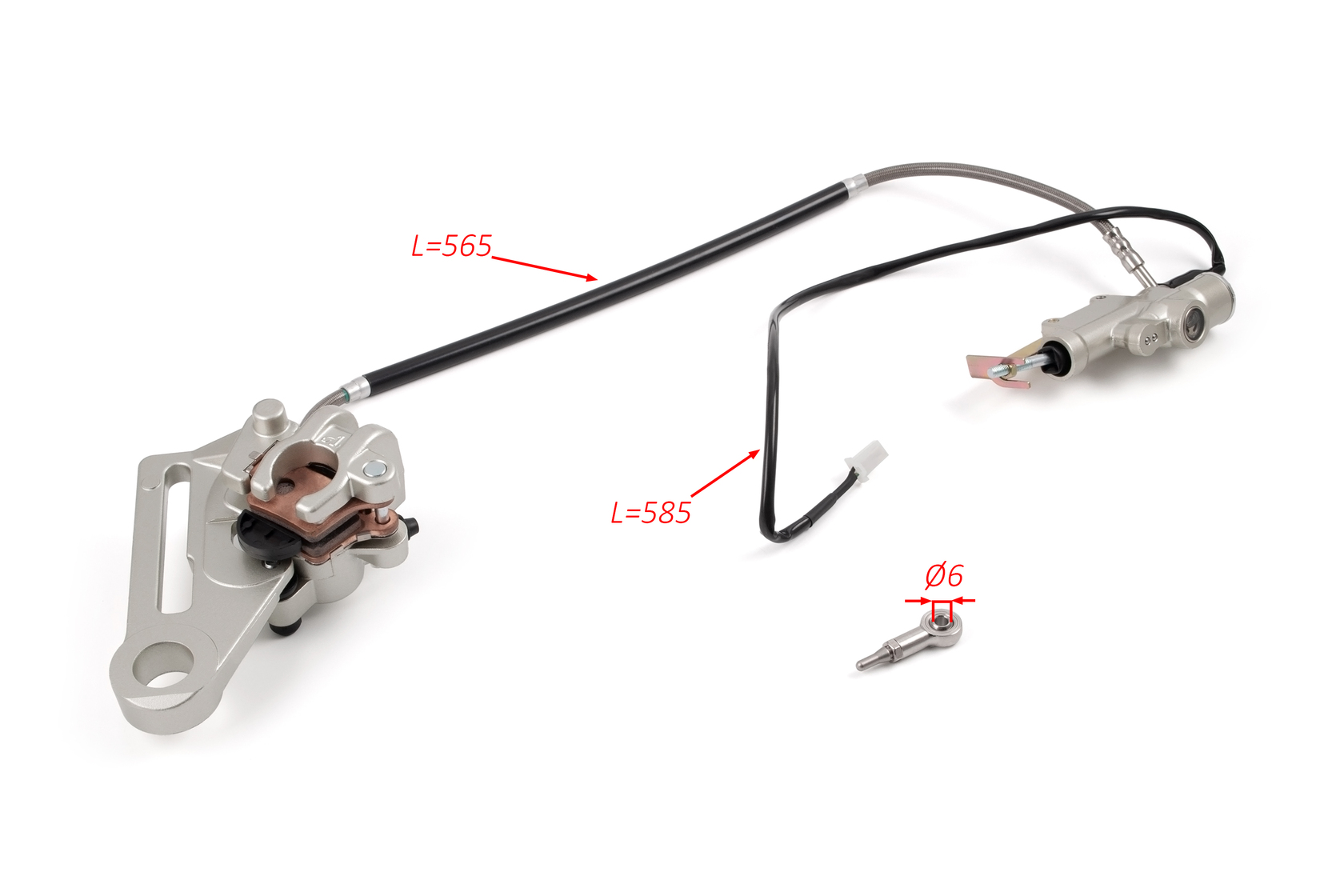 • • В комплекте: главный тормозной цилиндр, суппорт, тормозные колодки, армированная гидролиния, крепёж, концевик под стоп-сигнал