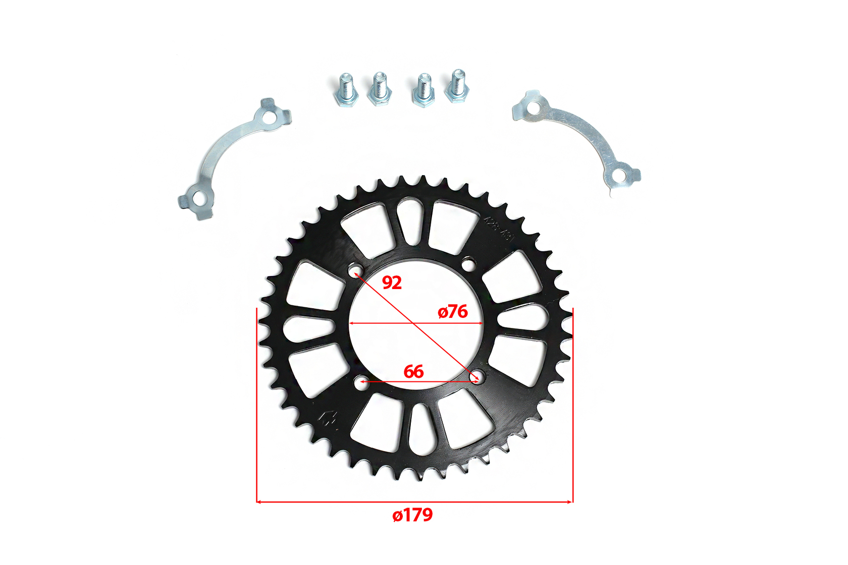 • Задняя ведомая звезда для питбайков с 39 зубьями, предназначенная для цепи типа 420. Изготовлена из прочной стали с закаленными зубьями для повышенной износостойкости. Центральное отверстие 76 мм, крепление по схеме 4×92 мм. Совместима с питбайками 125-190 см³.